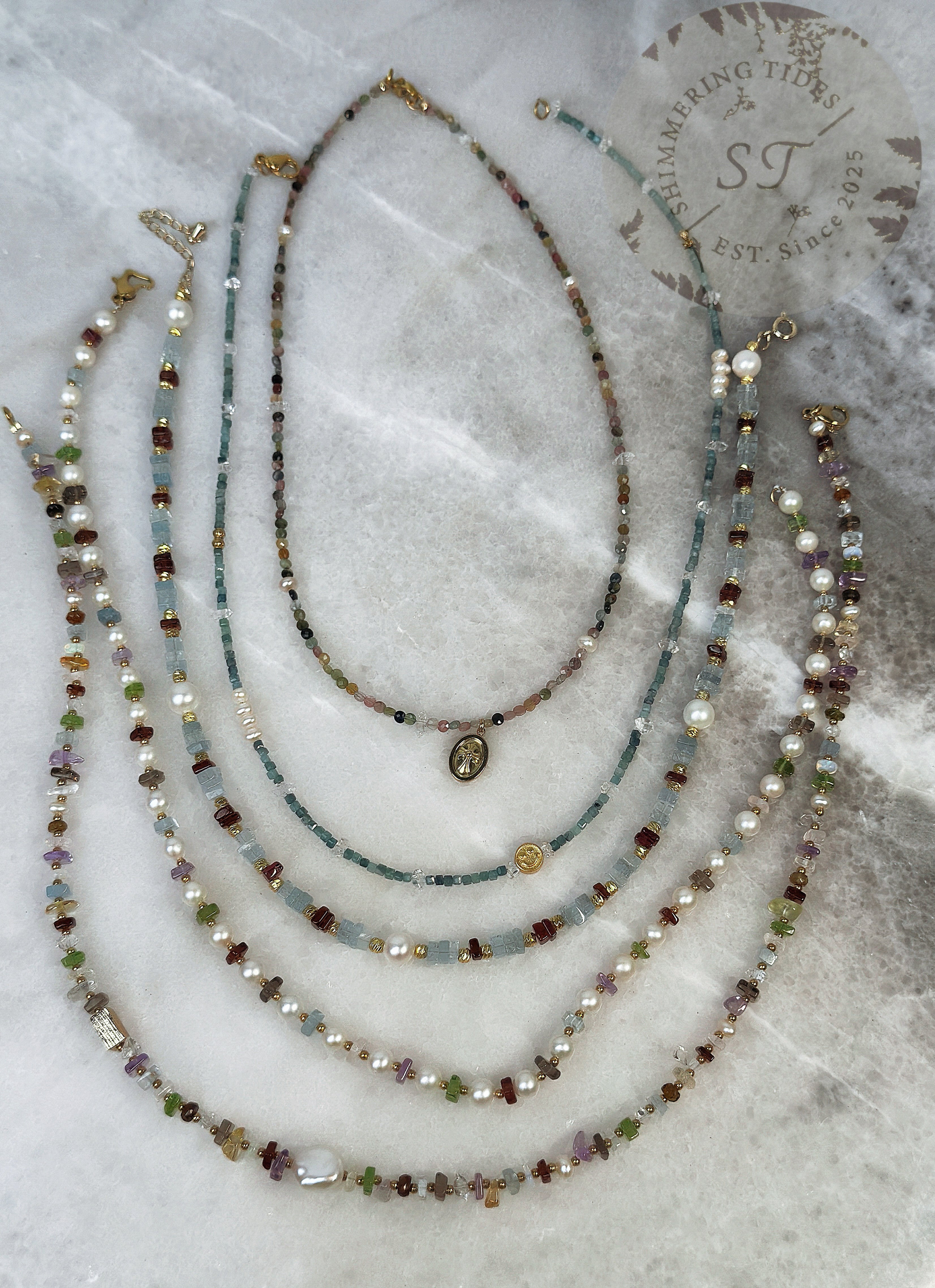 We 've always loved the glow of pearls . It reminds us of sunshine on a bright day. That's how the handmade journey of two girls began. We use different materials to create jewelry that brings pearls into daily life. No matter your age, profession, or where you are. May each piece accomany you with elegance and light.